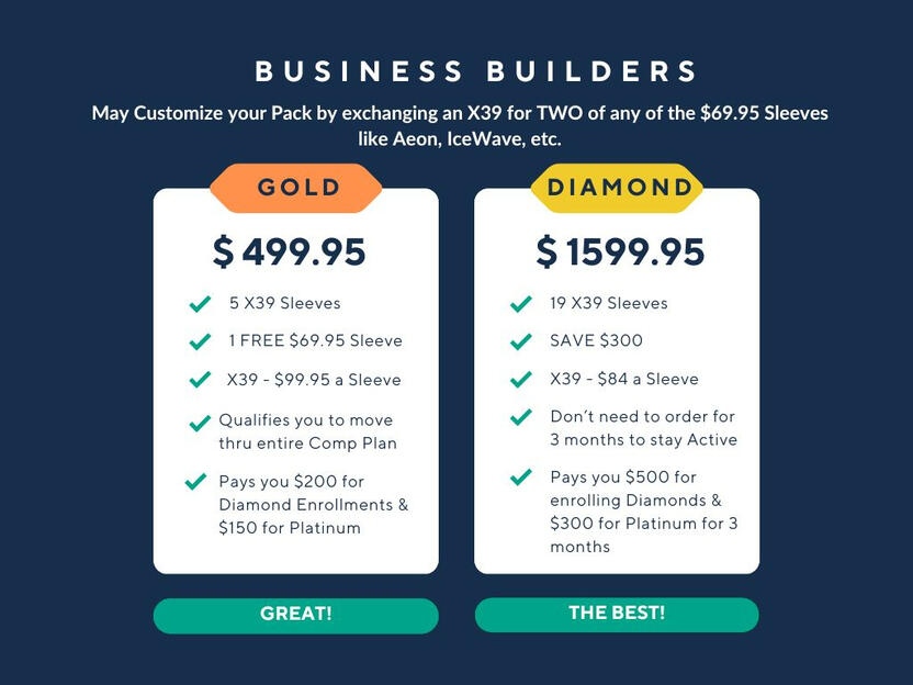 The X39 patch retails for $149.95. However, you can buy it wholesale for $99.95!BEST OPTION: Wholesale Member/Brand Partner. I call this the freedom path. You have the freedom to choose if you share to earn referral bonuses or not. You ALWAYS get Wholesale Pricing regardless if you choose to be on monthly Subscription or not.Choose a one-time Enrollment Pack to get started. This is a ONE TIME purchase. You may customize the pack and replace one X39 for TWO Aeon sleeves at no extra charge. Aeon reduces inflammation and stress. See graphic.Click the link below to get started.
